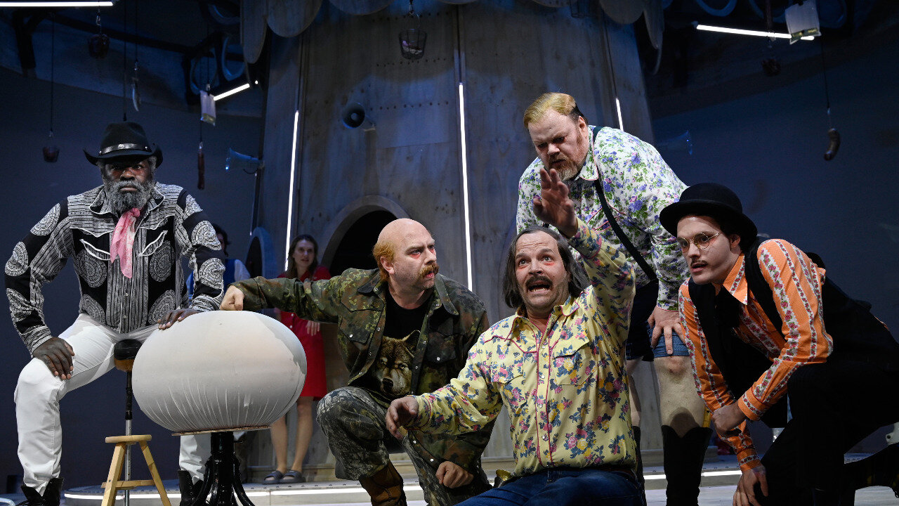 Das Publikum im Gorki reagierte ziemlich ähnlich, zum Schluss mit minutenlang stehenden Ovationen, als Emre Akiszoglu, Knut Berger, Benny Claessens, John Dassler und Taner Sahintürk in einer aufregenden und anstrengenden (aber nie angestrengten) und immer wieder mit Nachdenklichkeit, ja Ratlosigkeit durchsetzten Zwei-Stunden-Performance der Männer-Frage nachgehen. Oder besser: nachforschen. Mit einem Text von Falk Richter, der die glorreichen Fünf in ihre überhaupt nicht glorreichen persönlichen Erinnerungen treibt, die sie mit ihren Vätern haben/hatten.