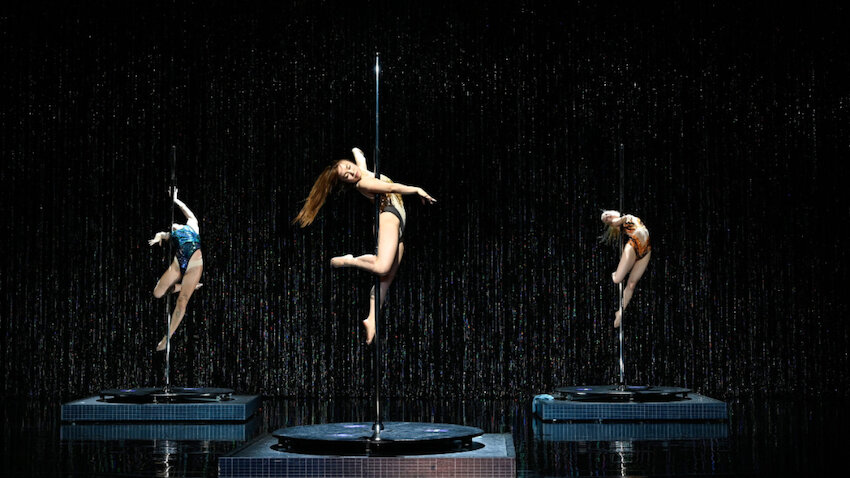 Immer wiederkehrendes und schließlich auch ermüdendes Mittel: Polestangen auf runden Podesten, an denen sich die Tänzer in wechselnden Formationen abturnen.