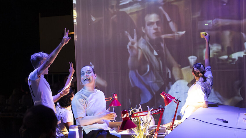 Einen Versuch auf der Bühne macht jetzt Alexander Riemenschneider im Theater an der Parkaue. Er verwendet dazu eine dokufiktionale Zeitreise von Marion Brasch, bekannt als Moderatorin von radioeins und Autorin mehrerer Bücher, u.a. "Ab jetzt ist Ruhe“, ein Roman, in dem sie ihre eigene Familiengeschichte aufarbeitet. Auch in „On Air On Fire“ greift sie auf ihr Leben zurück. Sie gehörte als junge Frau zum Team von DT64, einem Sender vor allem für junge Menschen, der nicht nur coole Musik spielte, sondern seine Hörerinnen und Hörer direkt im Radio zu Wort kommen ließ. Einzigartig in der DDR.